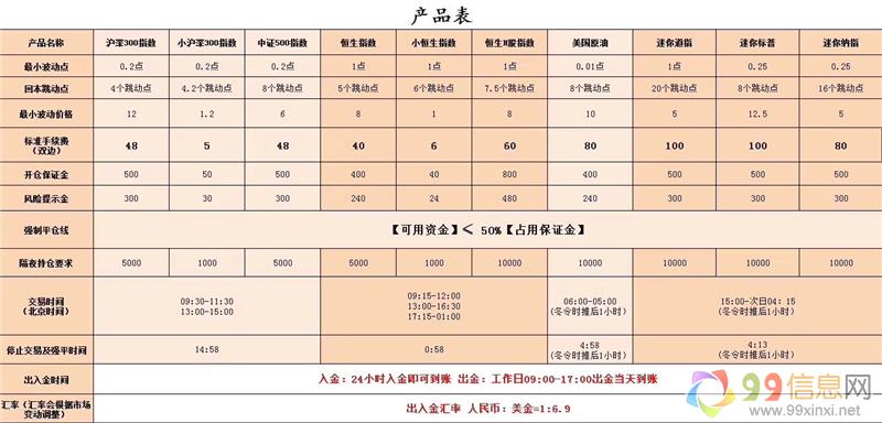1:主力产品:沪深300迷你 沪深300 中证500 恒指 小恒指 德指 A50指数 美原油 小美原油 迷你标普 迷你纳指等